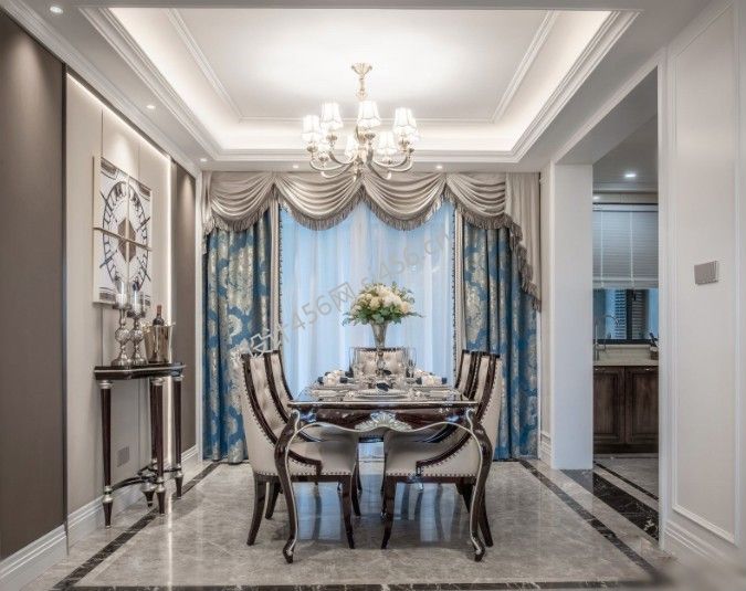 三居126方欧式风格餐厅吊灯设计图欣赏