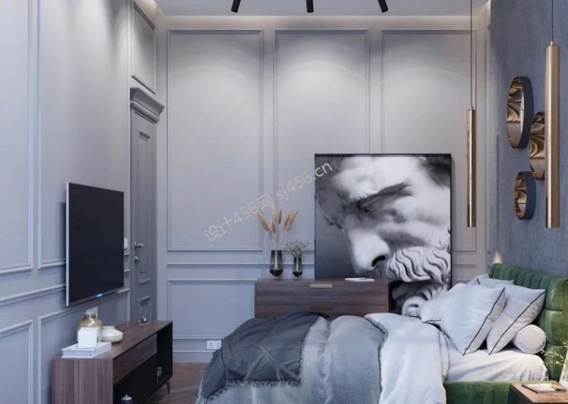 120平米现代轻奢风格三居室卧室背景墙装修图片