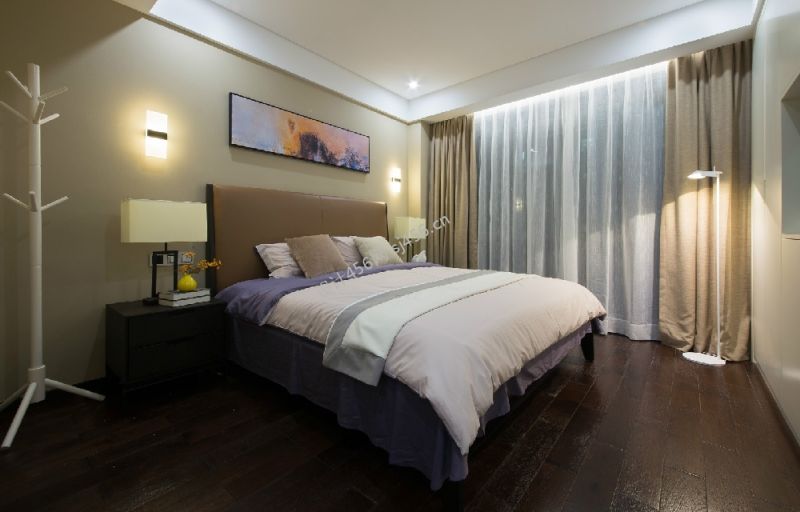 中式现代138平米三居室卧室床效果图
