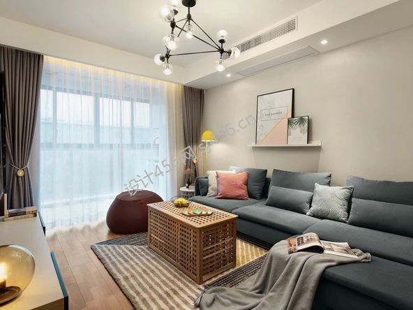 北欧风格112平米三居室客厅沙发背景墙装修图