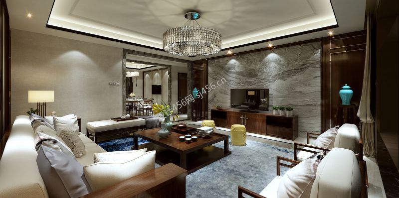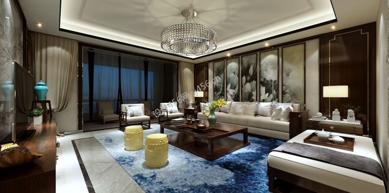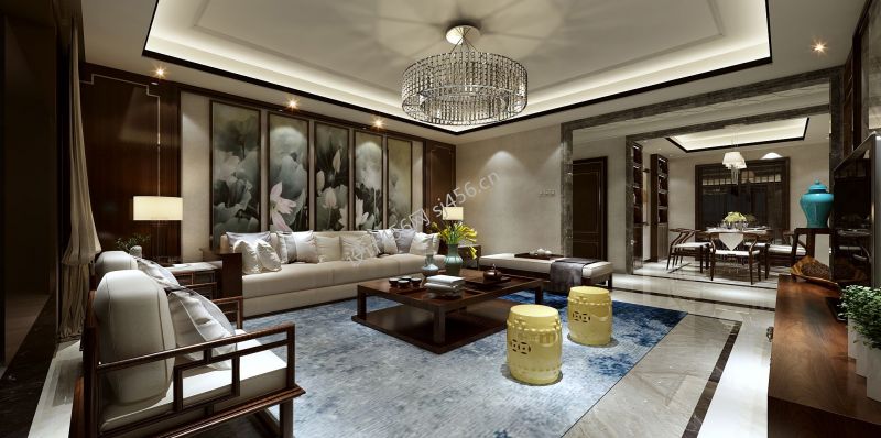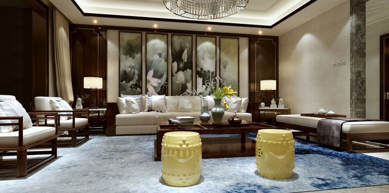 180㎡四居室新中式风格客厅吊灯装修效果图