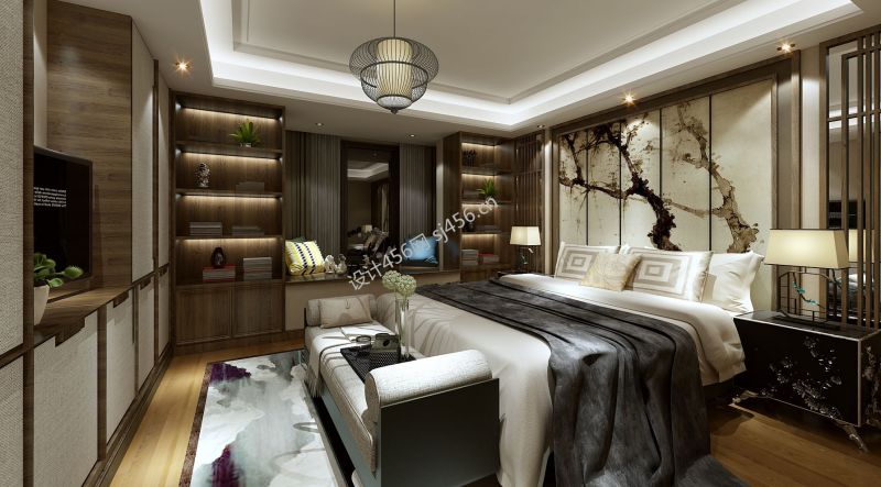 180㎡四居室新中式风格卧室飘窗装修效果图