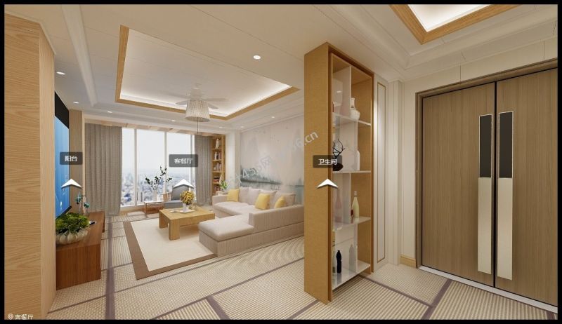 日式简约风格121平三居室玄关隔断装修效果图