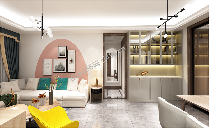 三居98平北欧风格客厅设计图欣赏