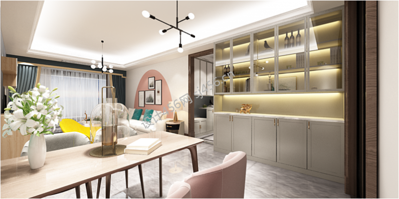 三居98平北欧风格餐厅设计图欣赏
