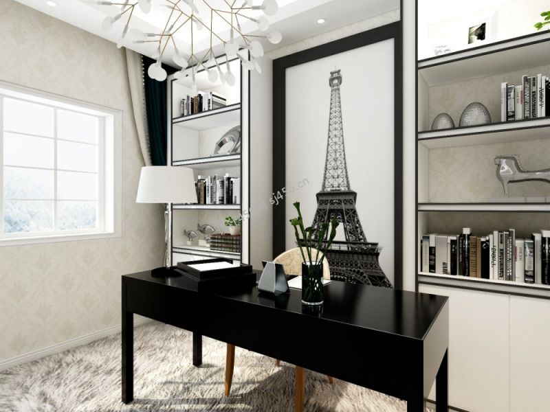 四居132平欧式风格书房设计图