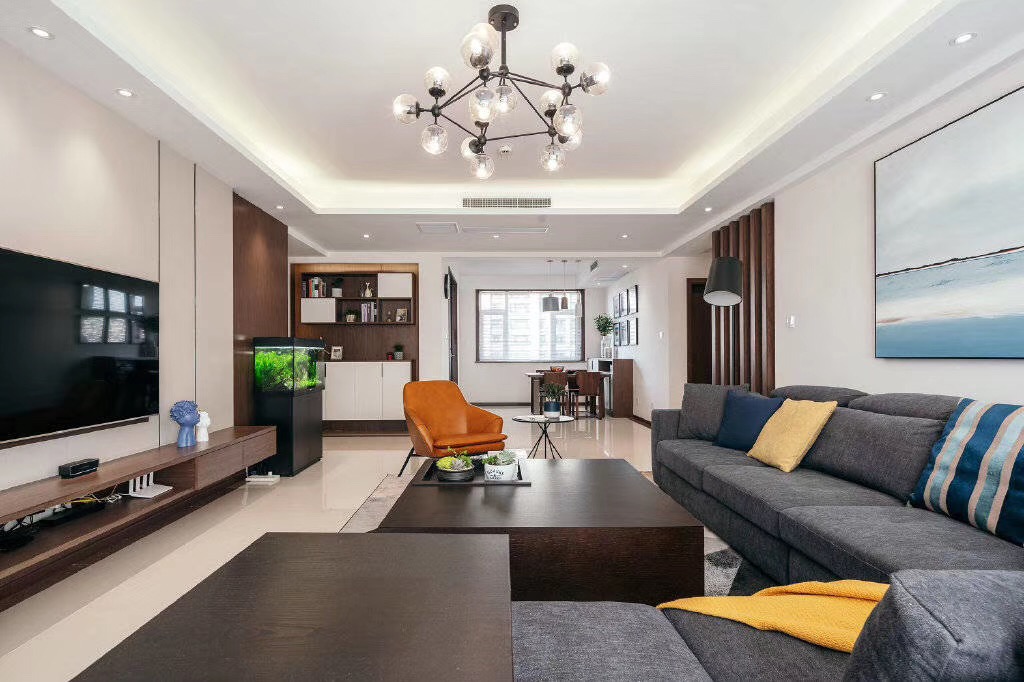 西安今朝装饰公司设计作品;西安120平三居室房子现代简约风格装修设计,简洁温馨很居家舒适;