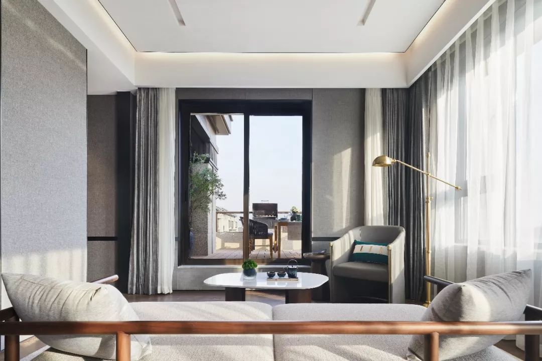享受充足的自然光线同时,也可尽情感受远处的景色。光影层层重叠,窗帘与风吹拂着一场流动又静谧的涟漪。