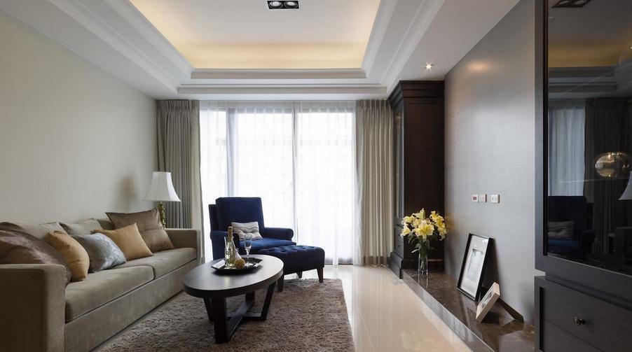 可以把整体的风格、家居搭配和材料品质做上来,墙面造型可以用线条简单的点缀一下,或者依靠色彩和整体搭配。