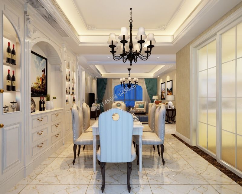 四居132平欧式风格餐厅吊灯设计图欣赏