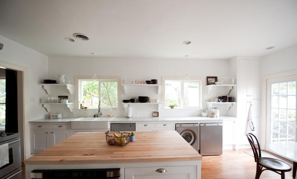 一般户型小的,为了充分利用空间,也有不少人把洗衣机摆放在厨房。当然,如果信风水的人则不愿意这么做,因为洗衣机与水相关,而厨房火相关,水火不相容。