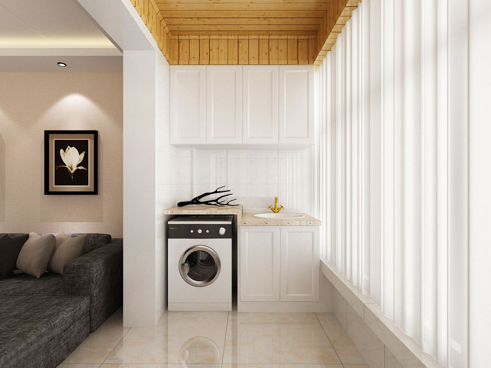 洗衣机摆放在阳台,通风好,不易积攒水汽则减少对洗衣机的影响;打造生活阳台,实用性强。