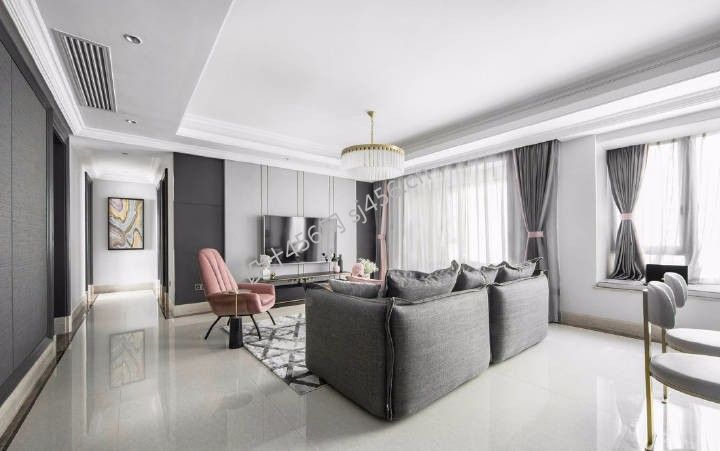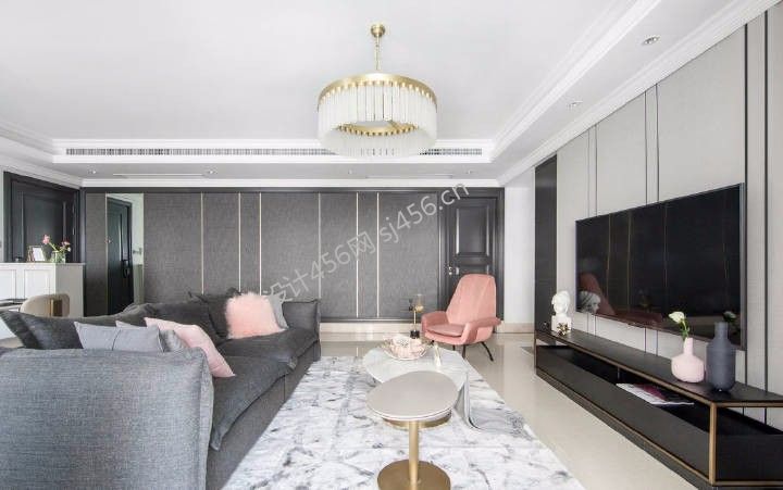 92平米现代轻奢三居室客厅吊顶装修效果图