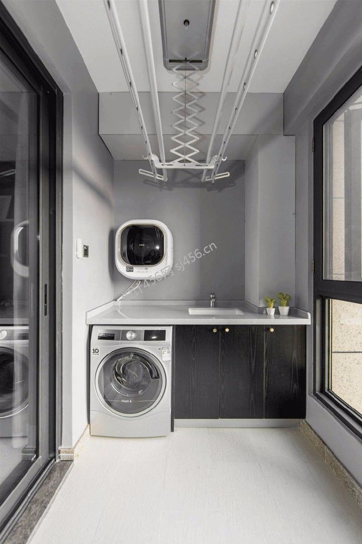 92平米现代轻奢三居室阳台洗衣机柜装修效果图