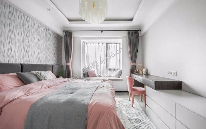 92平米现代轻奢三居室卧室背景墙装修效果图