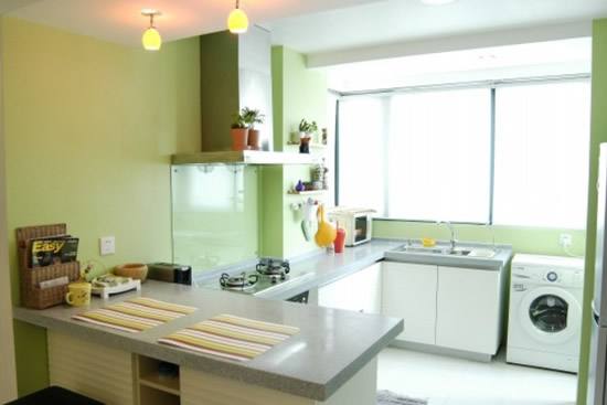 如果厨房带有阳台,可以把阳台改造成厨房烹饪区,用玻璃折叠门隔断油烟,保证室内卫生干净,也可以把厨房烹饪区安排在室内,厨房相连的阳台放置储物柜,用于放置不常用的生活用品,或者把阳台设计成小型餐厅节省室内空间。阳台设计成厨房的话,用电和排水处理一定要做好。