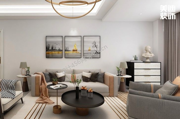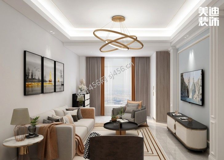 95㎡二居室北欧风格客厅吊顶装修效果图