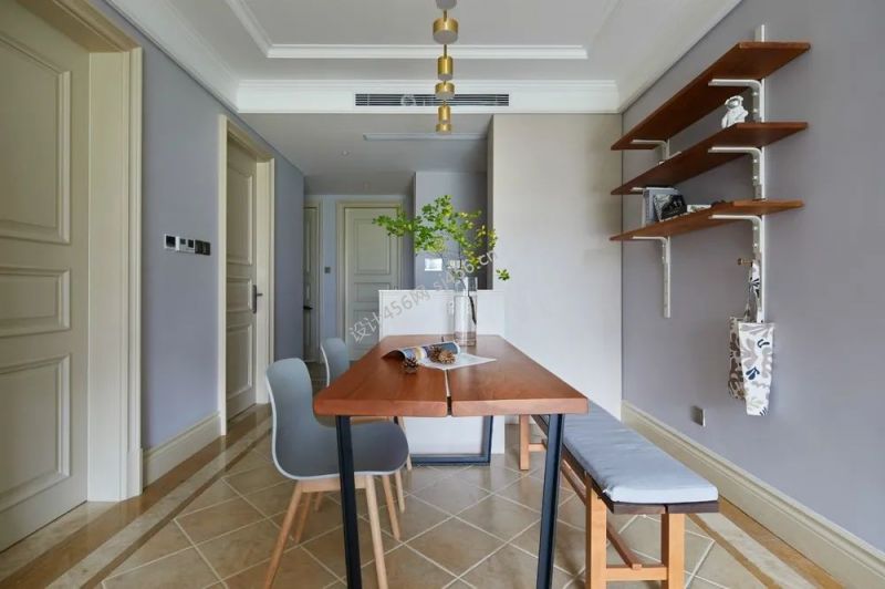 120㎡三居室现代美式餐厅地砖装修效果图