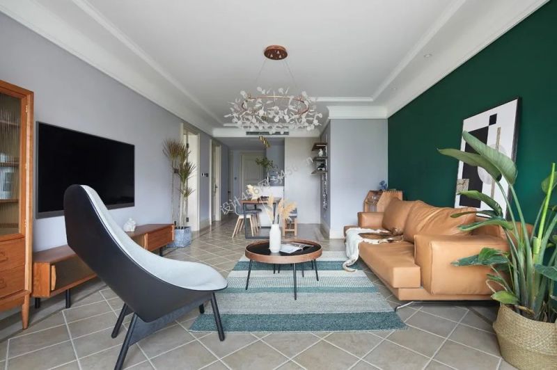 详情120㎡三居室现代美式客厅吊灯装修效果图
