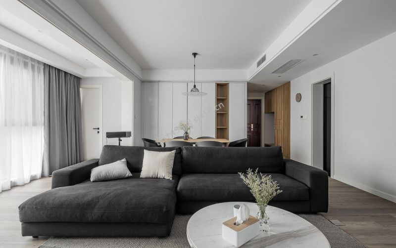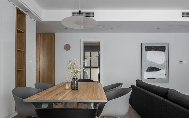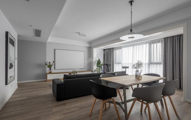 设计理念: 横厅的益处在于分界规则中,利用软装家饰作为空间的魔法师,以经典的灰色和木色完美结合,相互衬托、相互成就,打造出华尔不乱的居家空间。传统简约风格的室内设计大多以黑白灰为主,要打破传统并保留温度,需要设计师运用色彩元素的技巧。深色沙发、黑色餐椅、白色墙面、木色柜体、窗帘等色彩语素使整个空间达到温暖的简约恬静。钟爱电子产品的男主人希望这个家能有绝佳的影音效果,无屏电视的使用效 果极佳,是实现每个小愿望的贴心处理。休闲阳台是整个公共空间与室外连接的一个载体,在保留自身功能的基础上与客餐厅形成无界限的统一。设计师希望留出更多的空间,给相亲相爱的一家人,陪孩子一起童心未泯,保持永不降温的想象力和青春。设计师运用“无印”的手法无缝衔接简约与干练的空间图景,在洗炼地起落之间完善日常机能,并完整诉说生活场域所需的温暖意境,給归家人忙乱疲惫的心安然躺入这沉静寓所的温柔襟怀。淡灰色的背景搭配深灰色的沙发,温和的颜色给人的生活带来一丝温柔。一切景语,皆为情语。故事将在这里继续双一字排开的厨房既做到“洗切炒”合理动线、操作的高效便捷,又保证贮藏美观。餐厅是一个充满温度的地方,利用墙面做成满墙的储物柜,在收纳上也要做到强大和至简。希望以后的每一餐都会收下破晓第一道曙光的感动、助兴一整天的欢容,采集大自然种下的美丽芬芳,注入灵感的味道和她最温柔的心意,用满满的仪式感为所爱之人调味出沸腾的真情呵护与告白。餐厅是一个享受美食的地方,餐厅是一个充满欢笑的地方,餐厅是一个充满温度的地方。利用墙面做成满墙的储物柜,在收纳上也要做到强大和至简。卫生间瓷砖的选择上主要以干净防滑入手,壁挂式马桶和浴室柜的排列无缝衔接组合,做到卫生无死角。干湿分区,不争不抢,渗透其中,这就是生活的日常。主卧空间整体采用无主灯设计,用嵌入式筒灯加床头吊灯的巧妙手法,塑造睡意绵绵的环境光源。抽离奔忙、退去伪装,任散漫的思绪在心间肆意流淌,让天马行空的梦想去热情奔放。柔和的灰色过渡,没有冲击力的颜色搭配,舒缓紧绷了一天的神经儿童房搭配浅雅而温和的奶油粉,恰如健康肌肤的自然底色。顶面边沿处的叠级线条跃然其上,好似用心勾勒的眉眼细节,使空间呈现出清透怡然的裸妆效果。 横厅的益处在于分界规则中,利用软装家饰作为空间的魔法师,以经典的灰色和木色完美结合,相互衬托、相互成就,打造出华尔不乱的居家空间。传统简约风格的室内设计大多以黑白灰为主,要打破传统并保留温度,需要设计师运用色彩元素的技巧。深色沙发、黑色餐椅、白色墙面、木色柜体、窗帘等色彩语素使整个空间达到温暖的简约恬静。钟爱电子产品的男主人希望这个家能有绝佳的影音效果,无屏电视的使用效 果极佳,是实现每个小愿望的贴心处理。休闲阳台是整个公共空间与室外连接的一个载体,在保留自身功能的基础上与客餐厅形成无界限的统一。设计师希望留出更多的空间,给相亲相爱的一家人,陪孩子一起童心未泯,保持永不降温的想象力和青春。设计师运用“无印”的手法无缝衔接简约与干练的空间图景,在洗炼地起落之间完善日常机能,并完整诉说生活场域所需的温暖意境,給归家人忙乱疲惫的心安然躺入这沉静寓所的温柔襟怀。淡灰色的背景搭配深灰色的沙发,温和的颜色给人的生活带来一丝温柔。一切景语,皆为情语。故事将在这里继续双一字排开的厨房既做到“洗切炒”合理动线、操作的高效便捷,又保证贮藏美观。餐厅是一个充满温度的地方,利用墙面做成满墙的储物柜,在收纳上也要做到强大和至简。希望以后的每一餐都会收下破晓第一道曙光的感动、助兴一整天的欢容,采集大自然种下的美丽芬芳,注入灵感的味道和她最温柔的心意,用满满的仪式感为所爱之人调味出沸腾的真情呵护与告白。餐厅是一个享受美食的地方,餐厅是一个充满欢笑的地方,餐厅是一个充满温度的地方。利用墙面做成满墙的储物柜,在收纳上也要做到强大和至简。卫生间瓷砖的选择上主要以干净防滑入手,壁挂式马桶和浴室柜的排列无缝衔接组合,做到卫生无死角。干湿分区,不争不抢,渗透其中,这就是生活的日常。主卧空间整体采用无主灯设计,用嵌入式筒灯加床头吊灯的巧妙手法,塑造睡意绵绵的环境光源。抽离奔忙、退去伪装,任散漫的思绪在心间肆意流淌,让天马行空的梦想去热情奔放。柔和的灰色过渡,没有冲击力的颜色搭配,舒缓紧绷了一天的神经儿童房搭配浅雅而温和的奶油粉,恰如健康肌肤的自然底色。顶面边沿处的叠级线条跃然其上,好似用心勾勒的眉眼细节,使空间呈现出清透怡然的裸妆效果。