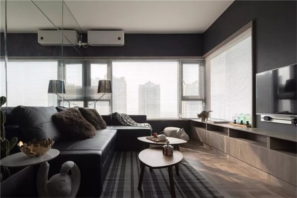 4、黑白灰运用 黑白灰是永恒的经典,永不过时!棕、灰等中性色是近年来装修中很流行的颜色。这些颜色很柔和,不会给人过 于强烈的视觉刺激,是打造素雅空间的色彩高手。但为避免过于僵硬、冷酷,应增加木色等自然元素来软化,或用黄 色等对比强烈的暖色,减弱原来的效果。