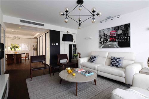 现代简约风格讲究含蓄装修,通过较少的装饰来营造恰到好处的空间效果,将空间设计元素以及材料都尽量简约化,黑白灰三色 是最常见的色系之一。但风格又讲究色彩搭配,还通过富有质感的材料,给空间赢得更多的视觉感。