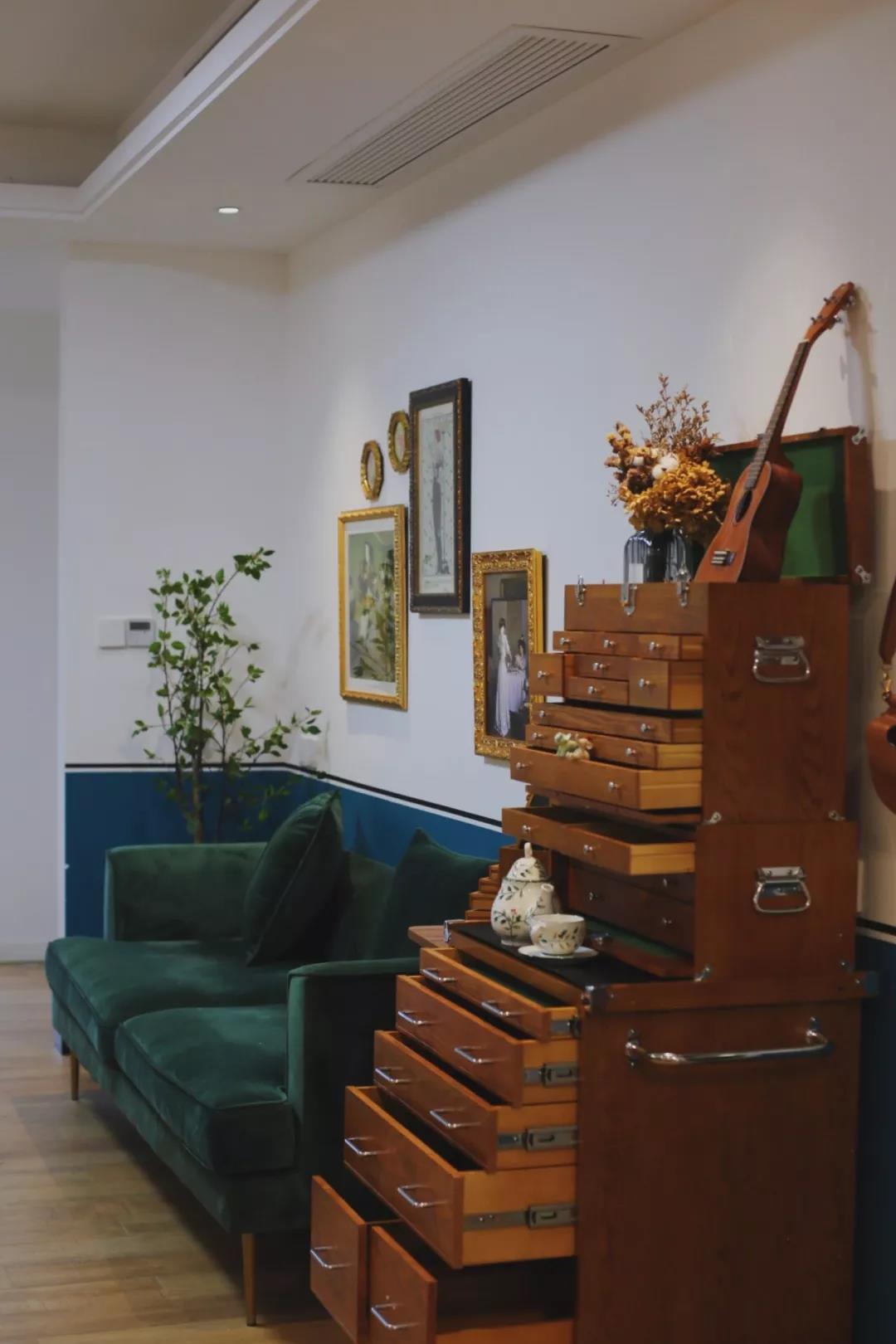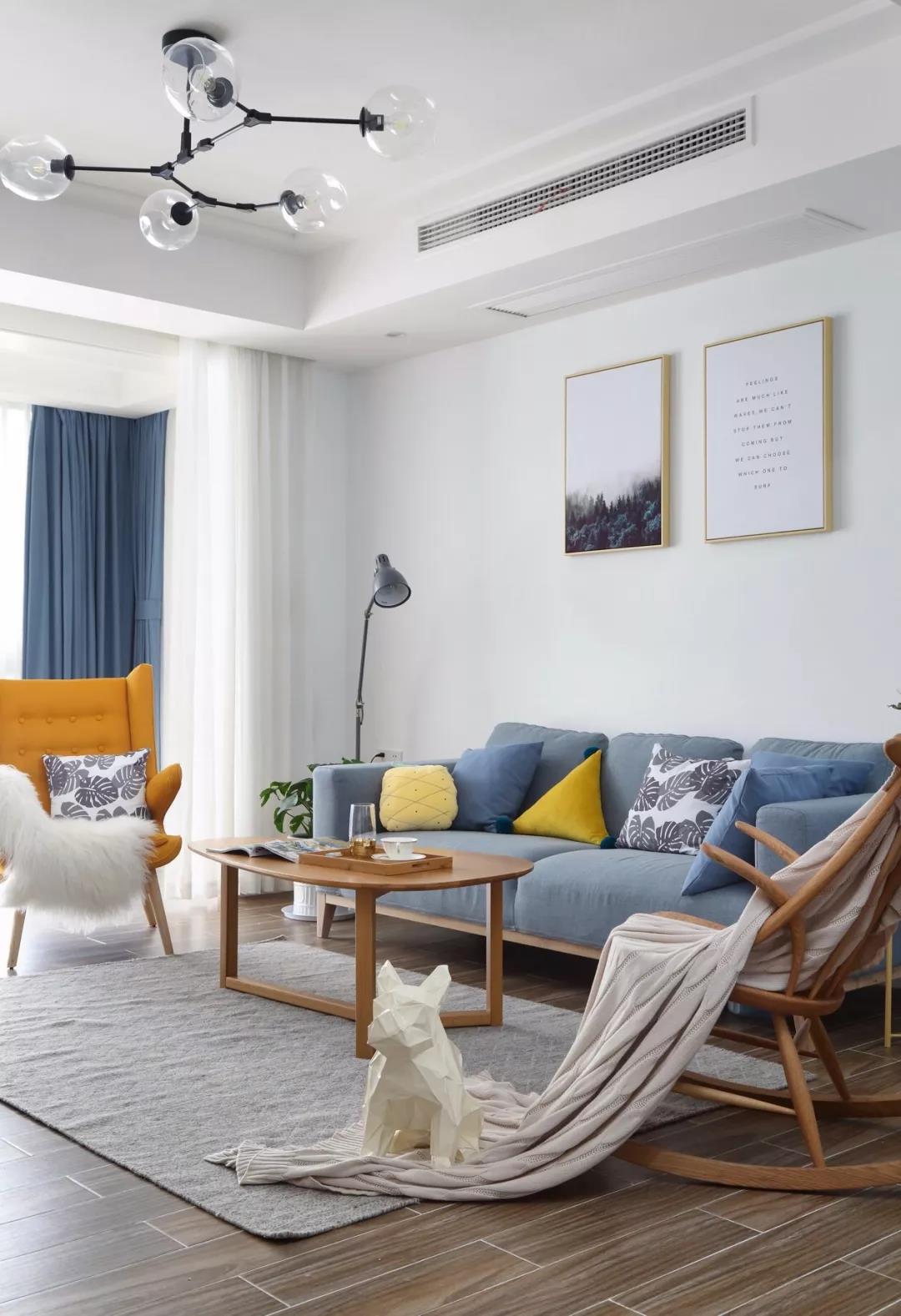 中央空调一般是下回风的,所以装在沙发上方的话,会是一种较为舒服的选择,这样出风口是对着电视墙一侧吹,给人以有凉感无风感的体验。