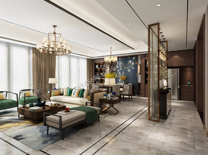 180平米中式别墅客厅装修实景图