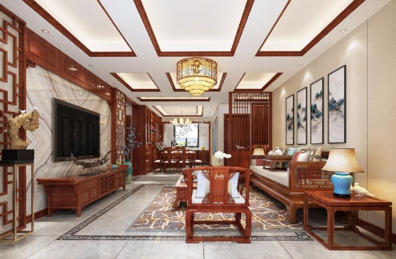 140平米中式客厅四居装修效果图