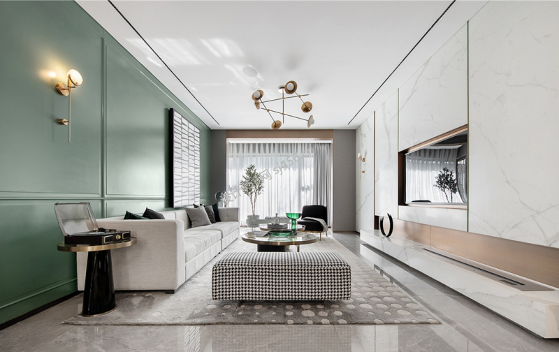 轻奢风格136平三居室客厅背景墙装修设计效果图
