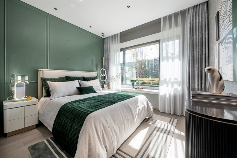 轻奢风格136平三居室卧室背景墙装修效果图