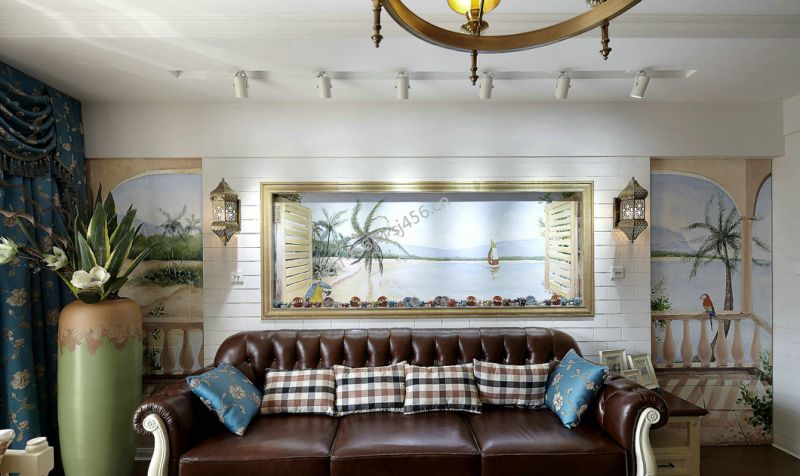 150平米地中海三居餐厅彩绘背景墙设计图片
