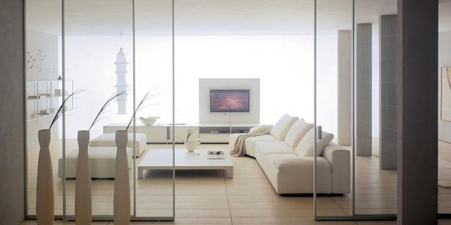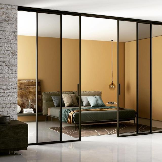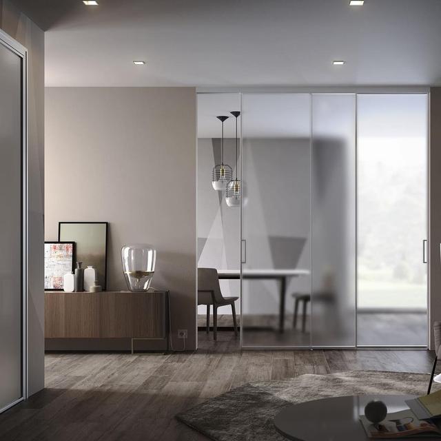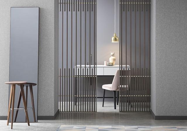 需注意的是这种设计的推拉门隔音效果、隔油烟的效果都很一般,不适合客厅和厨房的隔断。通常用在卧室、书房、或者玄关处都可以。