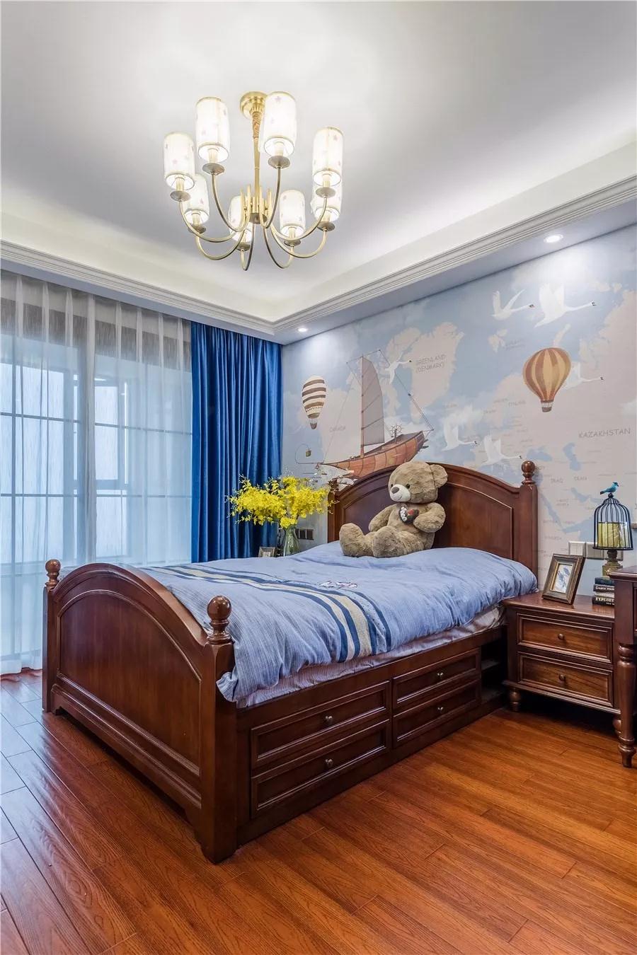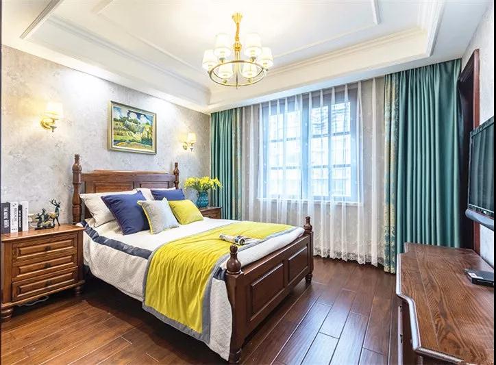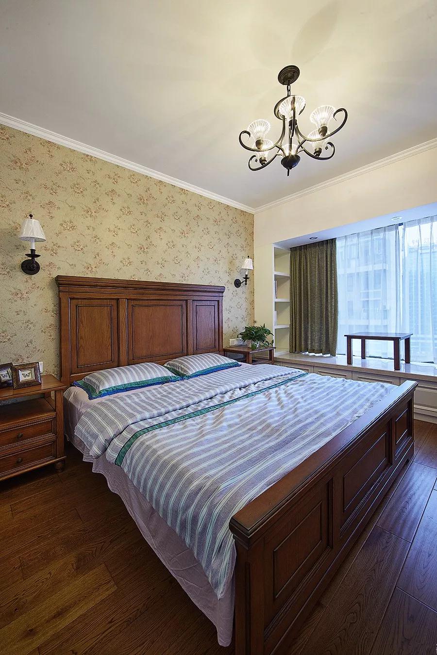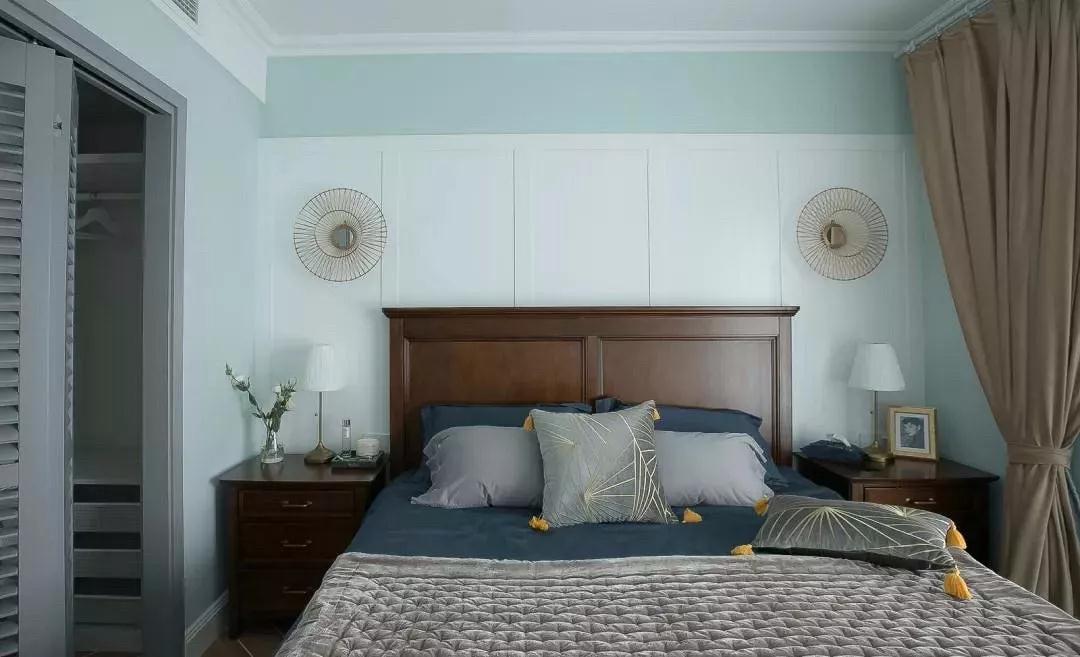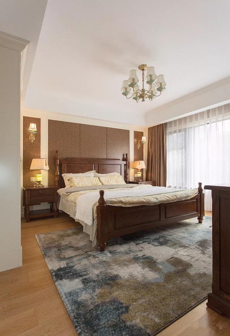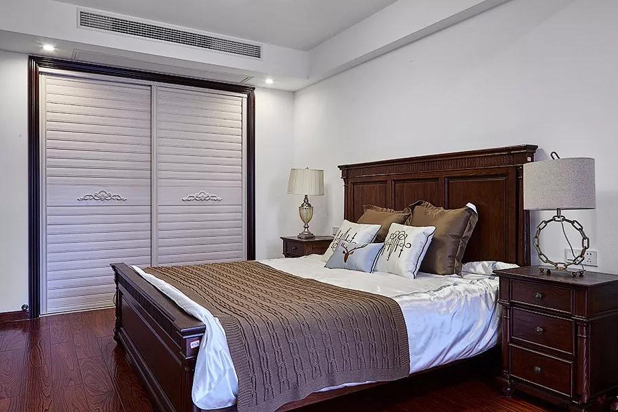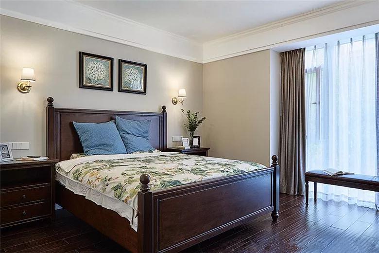 美式风格相对来说适合比较稳重的人士,通常深色的美式造型床铺,就比较适合这种稳重深沉的氛围布置