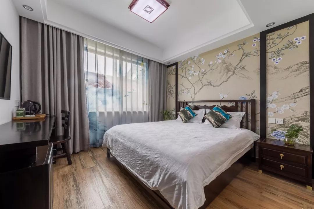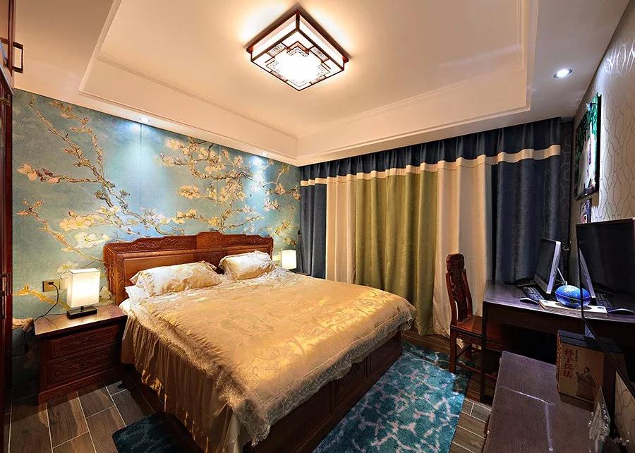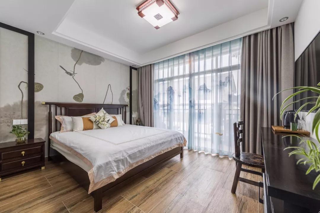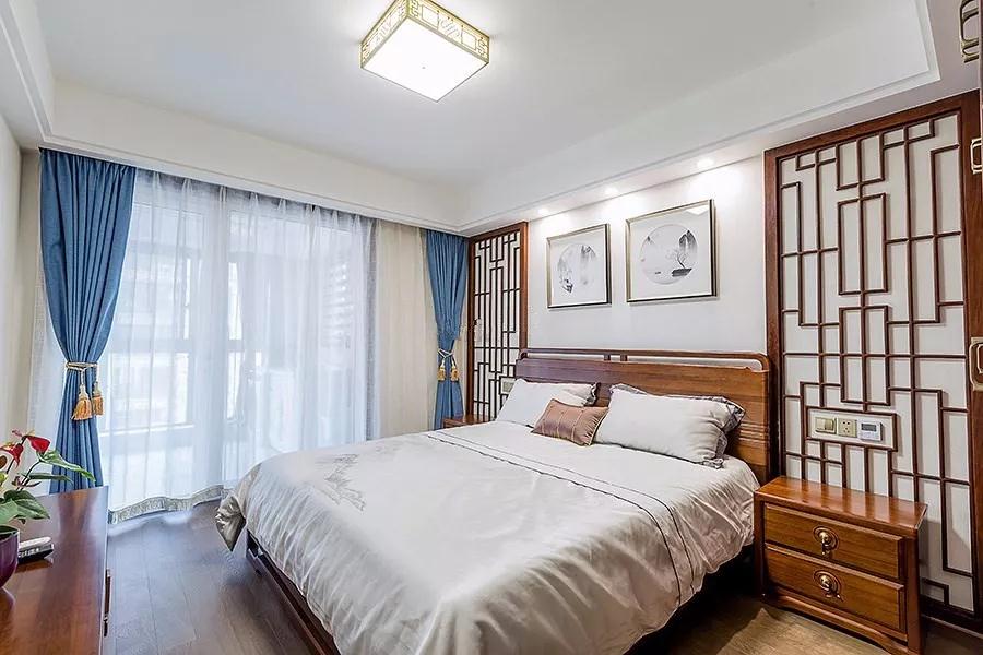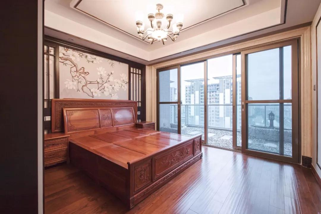 中式风格作为我们祖传的设计,也是比较多人喜欢的一种装修风格,这种卧室的床铺一般也是以深木色或黑色的实木床布置为主,整体空间端庄而又气韵。