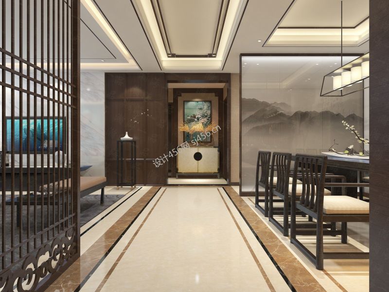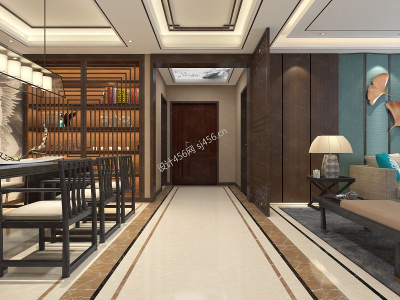详情帝豪花园中式风格四居走廊地板砖设计效果图