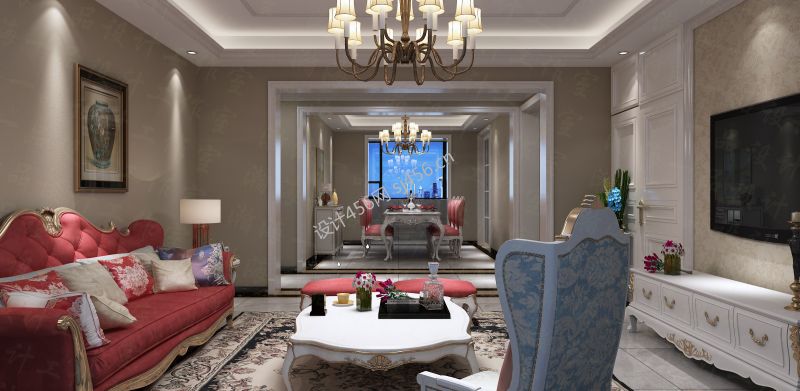 国力三期166平米三居欧式沙发背景墙装修设计效果图