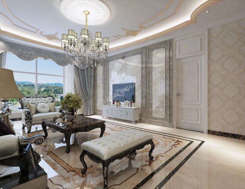 开莱国际社区200平米四居欧式客厅装修设计效果图