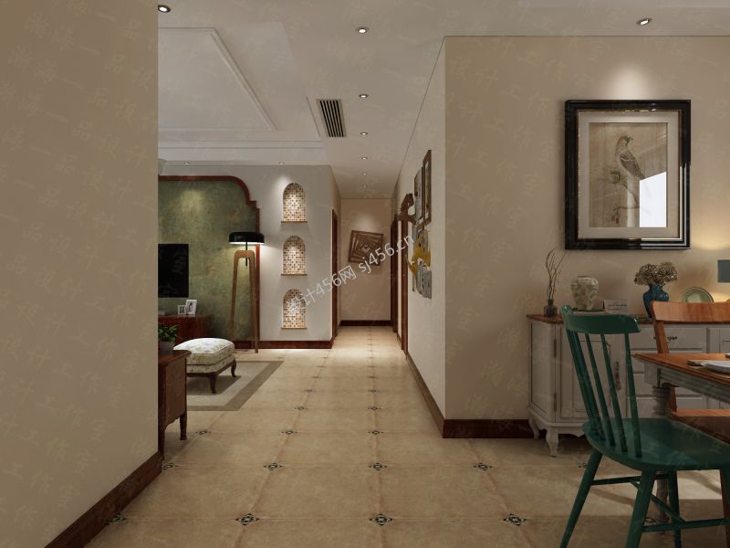 泛华公馆125平米三居美式走廊装修设计效果图欣赏