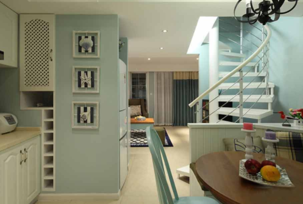 在进门处设计吧台,外侧还可打造收纳柜,收纳鞋子之余,节省空间,还有美化空间的效果。添加间厅柜充当玄关隔断,将餐厅与入户区隔开,同时也能充当储物展示柜。