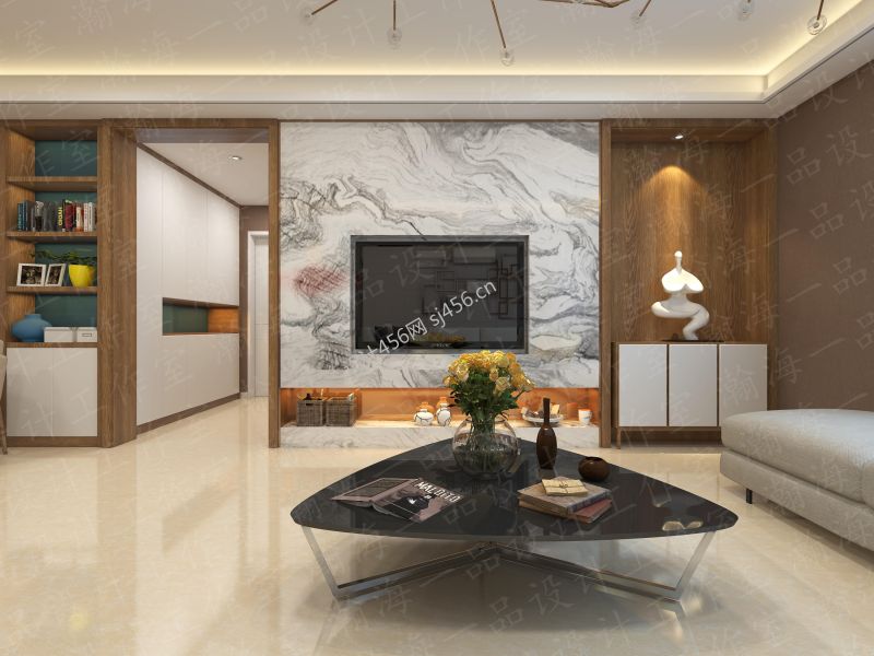 详情荣誉苑140平米三居现代电视背景墙装修设计效果图