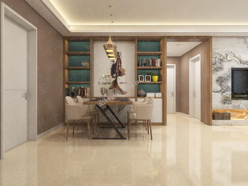 荣誉苑140平米三居现代餐厅装修设计效果图
