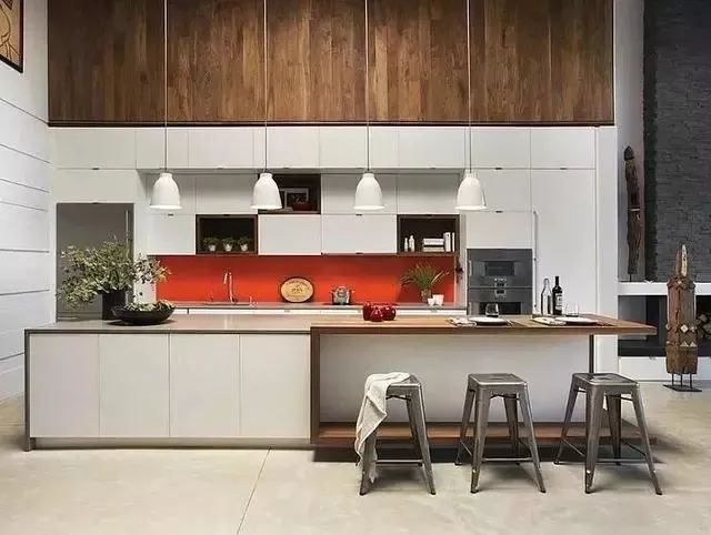 橱柜设计的第1步要增加橱柜操作台面积。可以考虑把家电嵌入到橱柜内,这样可以减少占用台面面积,整个厨房也看起来也比较简洁,看起来高大上!
