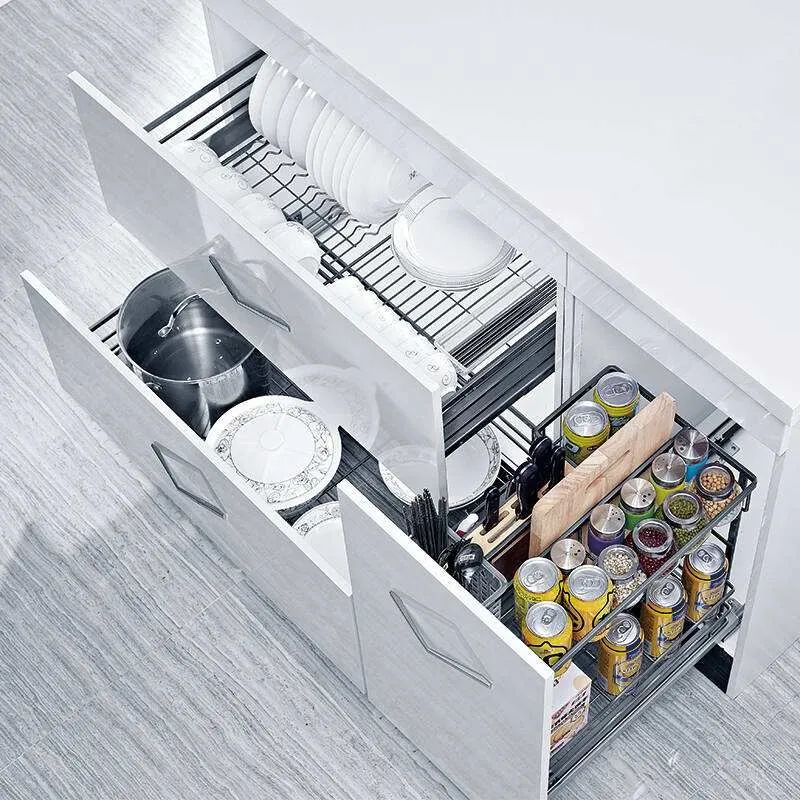 但是如果你家里有洗碗机、消毒柜这类电器,那么就没有必要再安装拉篮了 。