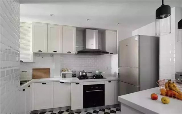 欧式或者田园风格还可以选取模压板,对厨房的保险度来说,白色永远不会过时,且能保持洁净、温馨的感觉。