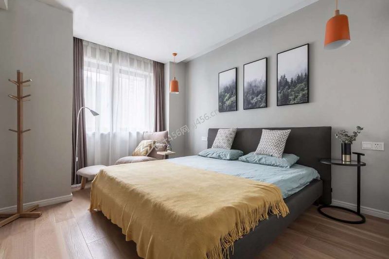 现代简约风格127平三居室卧室床装修设计图