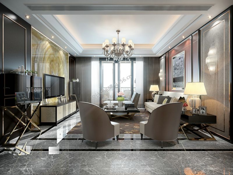 轻奢风格138平三居室客厅吊顶装修设计图
