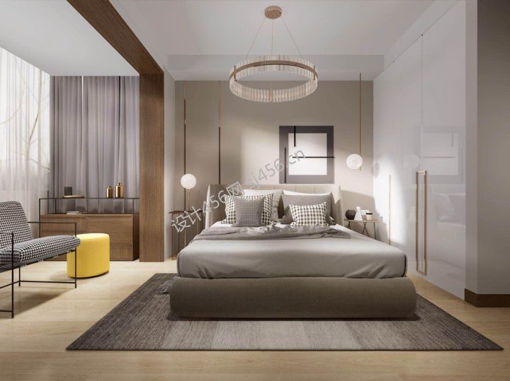 现代风格132平三居卧室吊灯装修设计图片