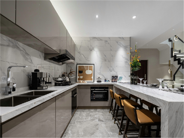 厨房台面种类繁多:亚克力、不锈钢、天然石材及人造石英石台面;