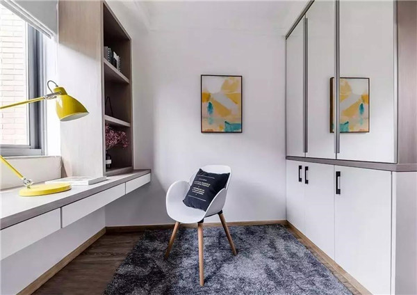 次卧设有专门的阅读区,当夜深人静的时候,伴着温暖的灯光,品读一本喜欢的书,岁月静好,温暖夜长。
